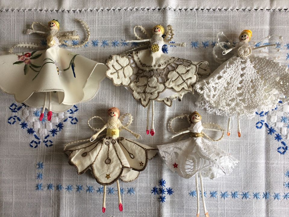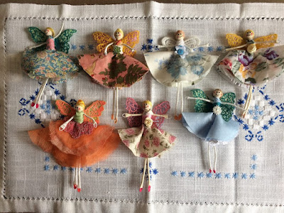 I managed to complete 20, they are made from wrapped wire and dressed mainly in vintage textiles.