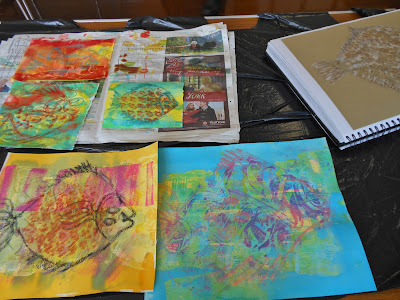 5. You can add colour to the dry collage with pencils to highlight areas. I give my collages a coat of acrylic wax to take away the dusky appearance. You can also coat with olive oil and allow to dry for a few days. Then iron over sheets of kitchen towel until there is no more surplus oil transferred.